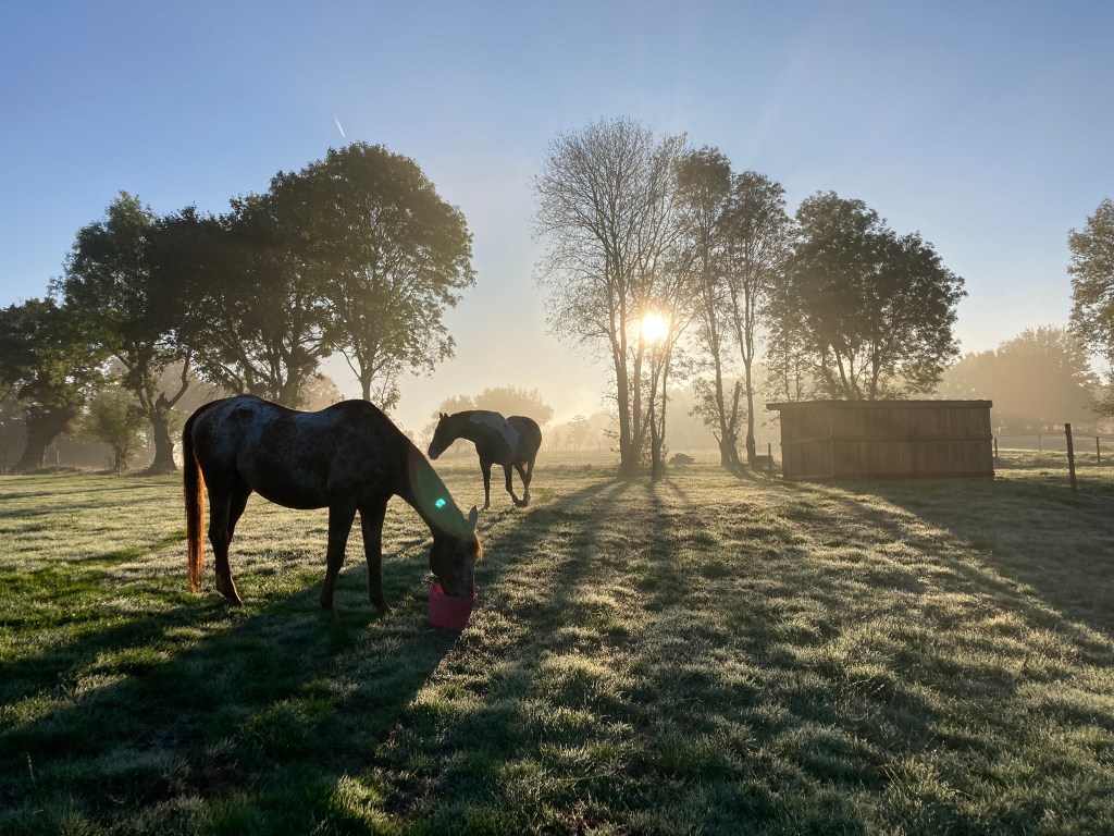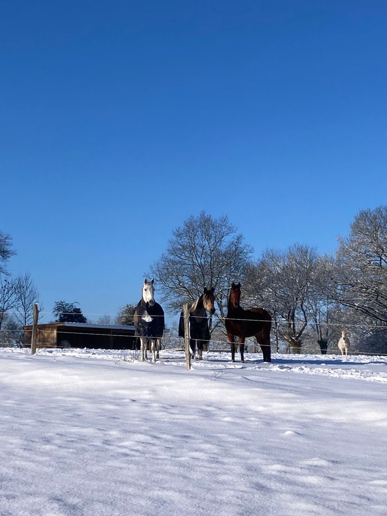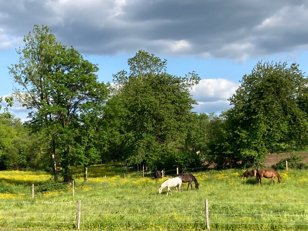 Nos pensionnaires vivent au pré à l’année, en groupes structurés et stables. Toutes nos prairies disposent d’abris naturels ou artificiels.