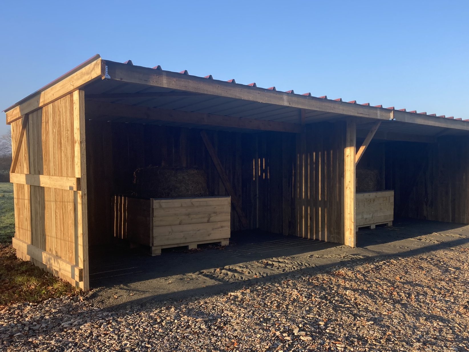 Des parcelles sont dédiées à la période humide, soit de décembre à mars environ, et disposent d’abris en dur, de zones de nourrissage abritées et stabilisées, et d’accès stabilisés. Les abris sont curés quotidiennement. Les chevaux ont la liberté d’aller et venir comme bon leur semble.